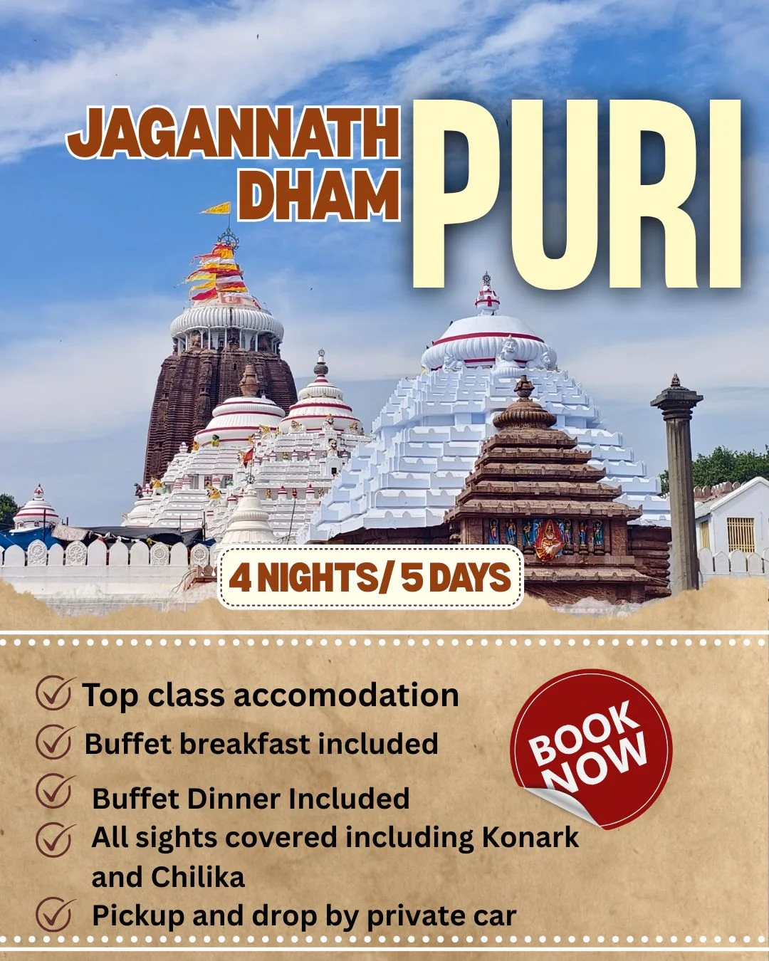 We are a Destination Management Company (DMC) based in Bhubaneswar, specializing in comprehensive Odisha tour packages. Our services cover a wide range of experiences, including local sightseeing, tribal tours, wildlife exploration, temples and monuments, textile and handicraft trails, heritage walks, MICE events, trade shows/exhibitions, student group tours, and more.